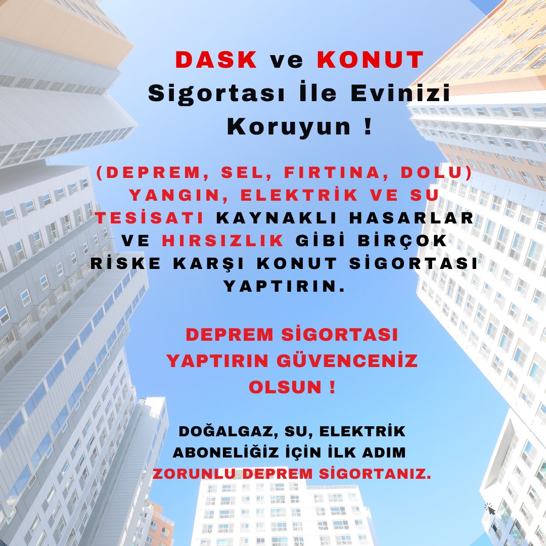 Zorunlu Deprem Sigortası olan DASK deprem kaynaklı hasarlar ve depreme bağlı meydana gelen yangın, yer kayması ve tsunami gibi felaketler sebebiyle oluşan hasarların tanzimini sağlamaktadır.